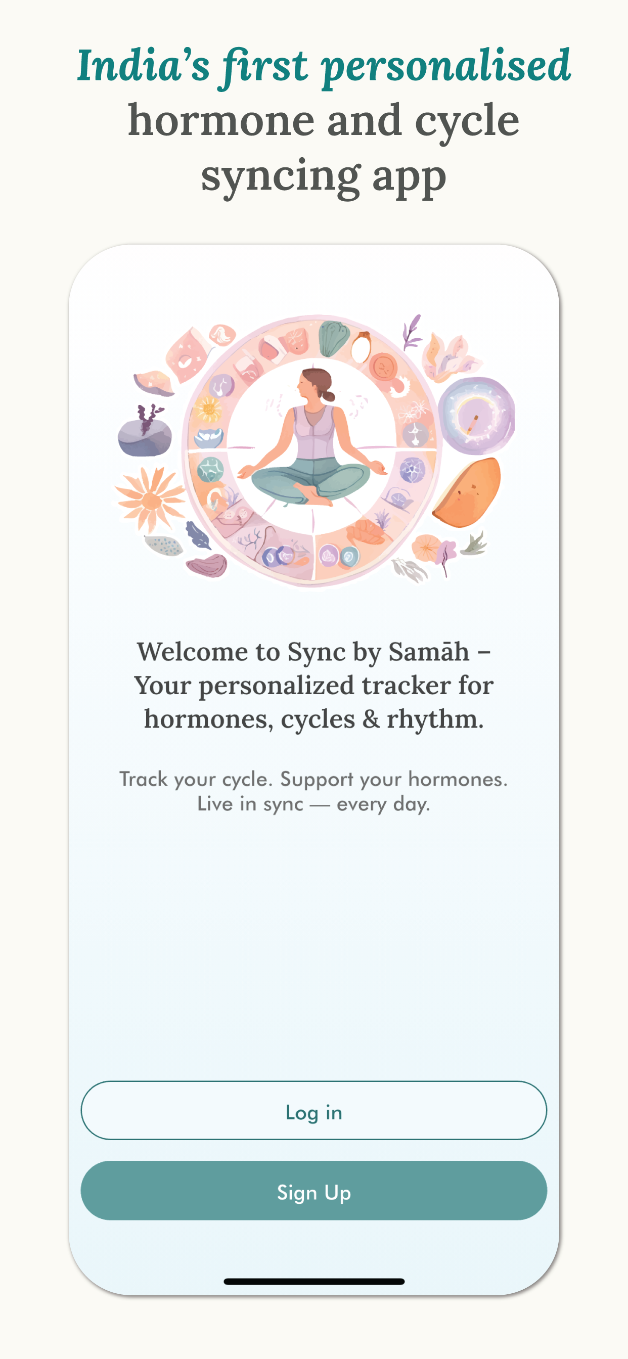Sync is a free hormone health app created by Samāh. It helps women and men understand their hormones, track their cycles or daily rhythms, and make small lifestyle changes that actually support balance, not quick fixes.
