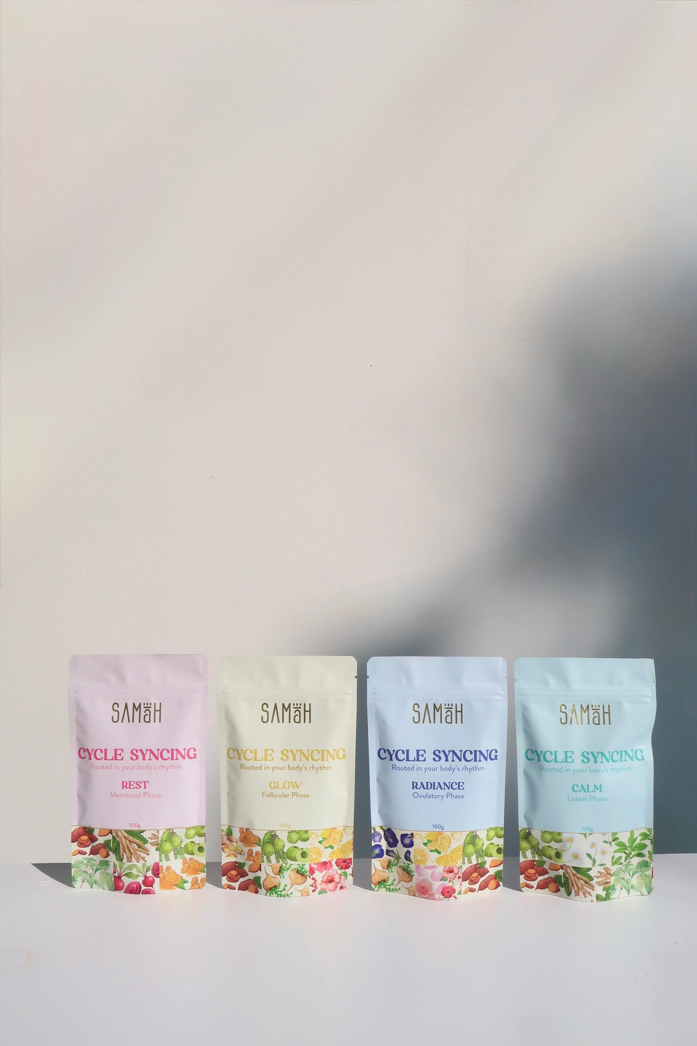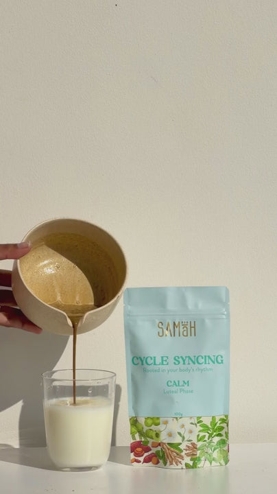 Samāh’s cycle syncing blends were created to support each of these phases with carefully chosen foods and herbs, making cycle syncing easy to follow without overthinking it.